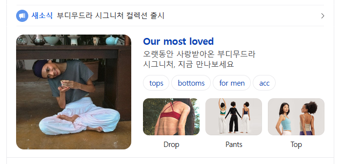 - 특징: 편안하면서도 감각적인 디자인, 요가뿐 아니라 일상복으로도 활용 가능