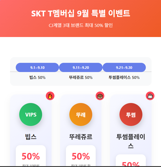 SKT T멤버십 9월 혜택의 핵심 - CJ계열 3대 브랜드 할인 쿠폰으로 월 20만원 절약하는 법