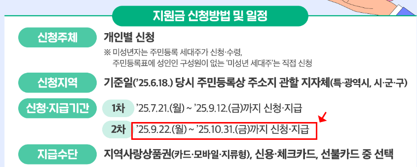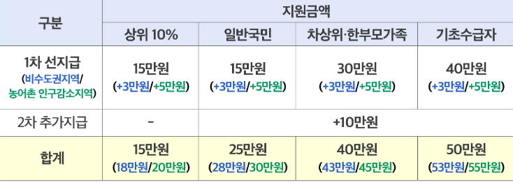 - 농어촌 인구감소지역: 5만원 추가 지급