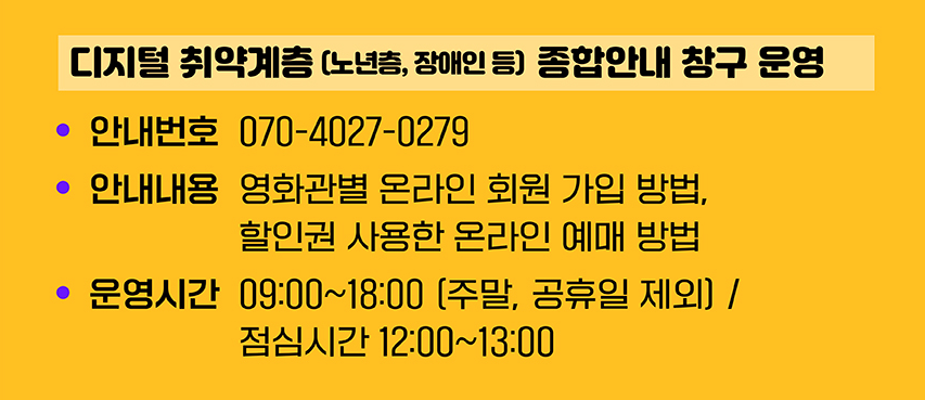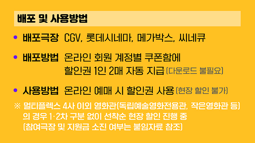 - 대상자: 모든 국민 (CGV, 롯데시네마, 메가박스, 씨네큐 온라인 회원)