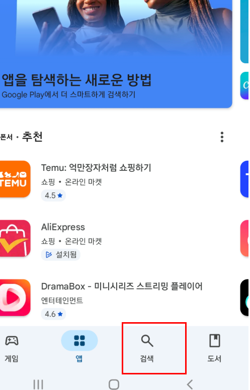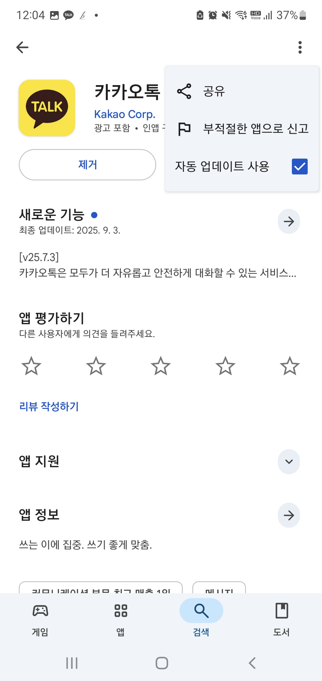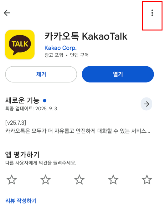 - 검색창에 ‘카카오톡’ 입력 후 앱 페이지 이동