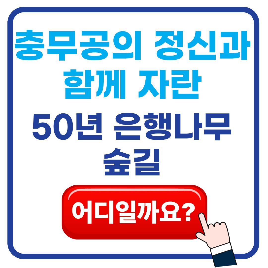 가을이 오면 꼭 한 번쯤 방문해보시길 추천합니다. 황금빛 은행잎이 만들어내는 터널을 걸으며, 반세기 동안 이 자리를 지켜온 나무들의 이야기에 귀 기울여보세요. 충무공의 정신처럼 곧게 뻗은 은행나무들이, 여러분에게 특별한 가을의 추억을 선물할 것입니다.