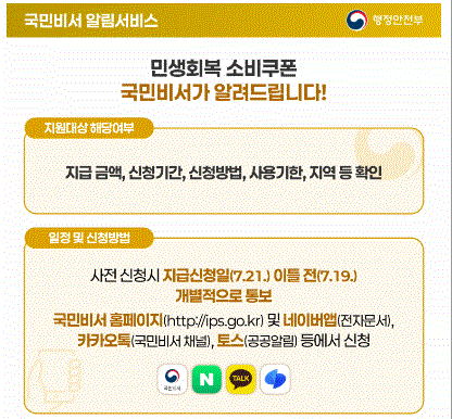 공식 정보: 행정안전부 민생회복 소비쿠폰(mois.go.kr) | 국민비서(ips.go.kr)