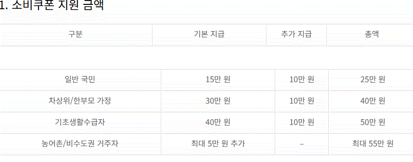 결론적으로 농어촌 거주 기초수급자라면 최대 55만 원까지 받을 수 있습니다.