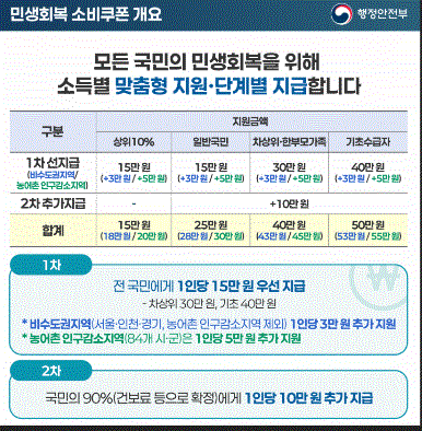 - 2차 추가 지급 (9월 22일~): 10만 원 추가 (국민 90% 대상)