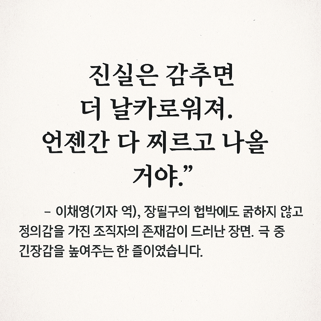 정의감을 가진 조력자의 존재감이 드러난 장면. 극 중 긴장감을 높여주는 한 줄이었습니다.