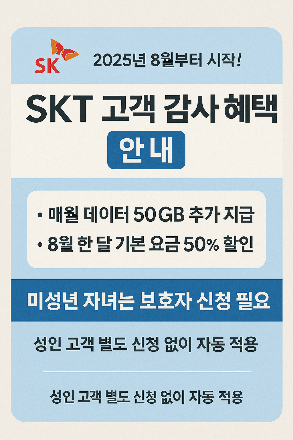 이 혜택은 SKT망을 사용하는 알뜰폰 사용자까지 포함되며, 별도 신청 없이 자동 적용됩니다.